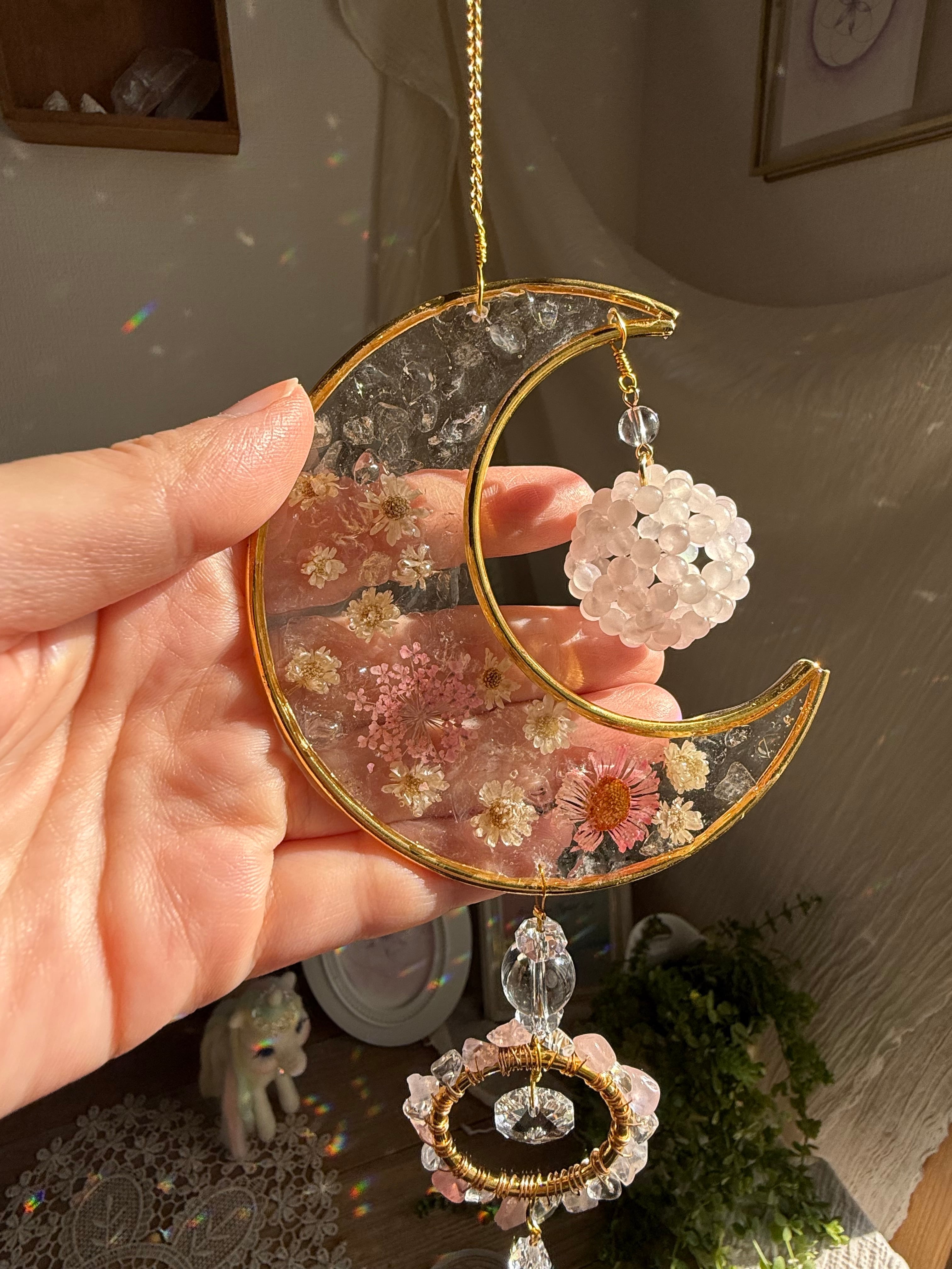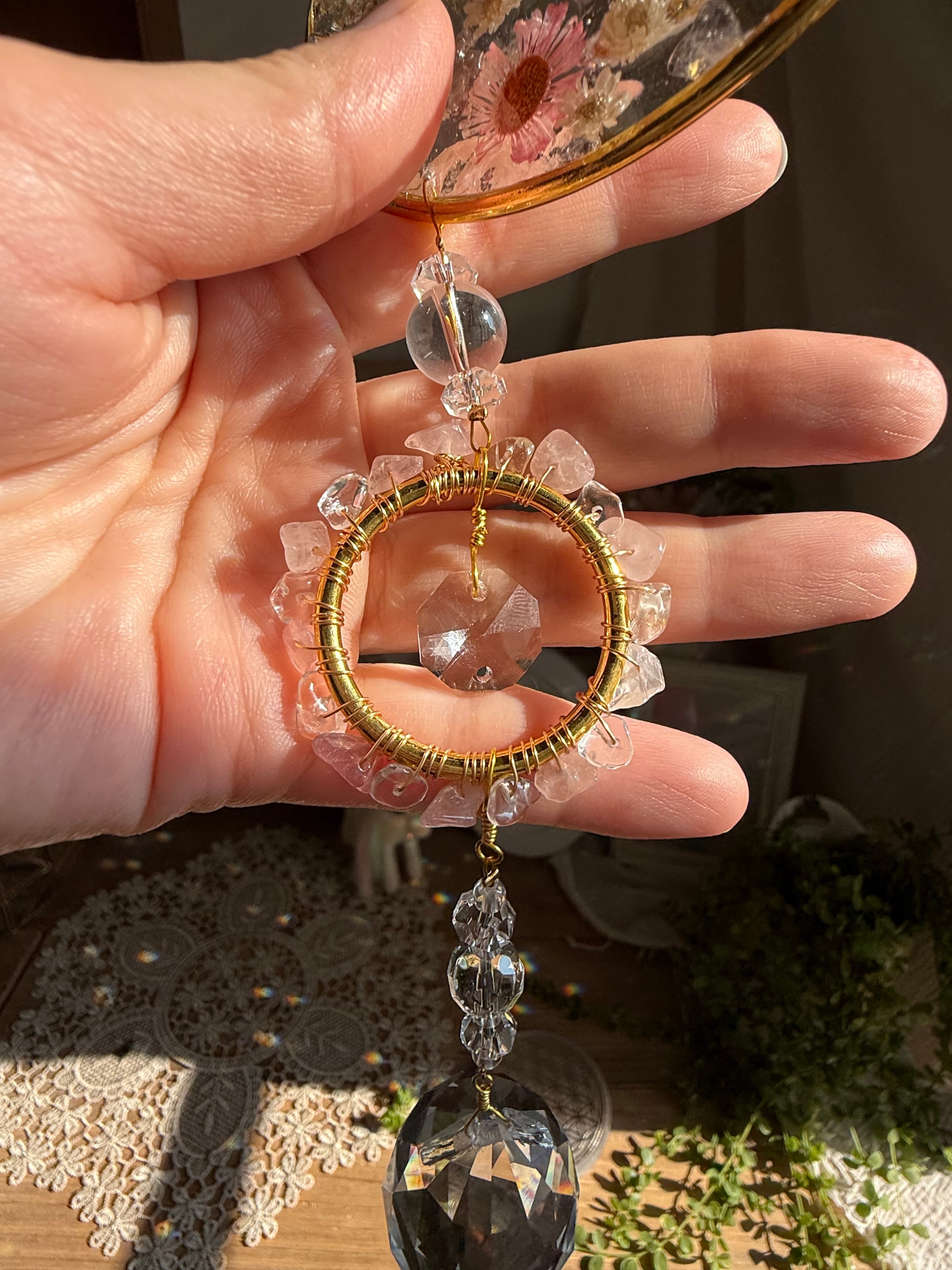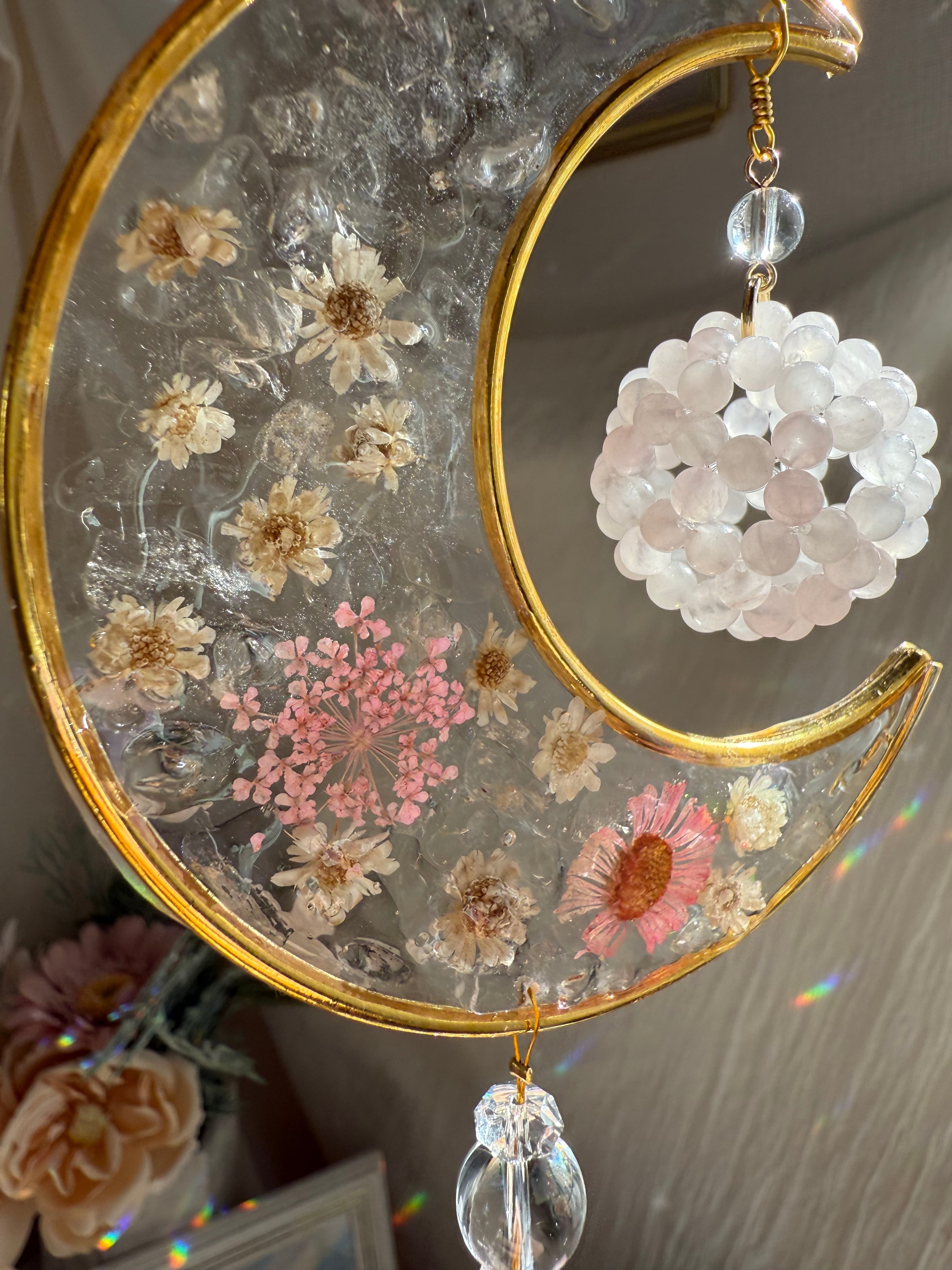 ②月と花・サンキャッチャー(ローズクォーツとフラワー)